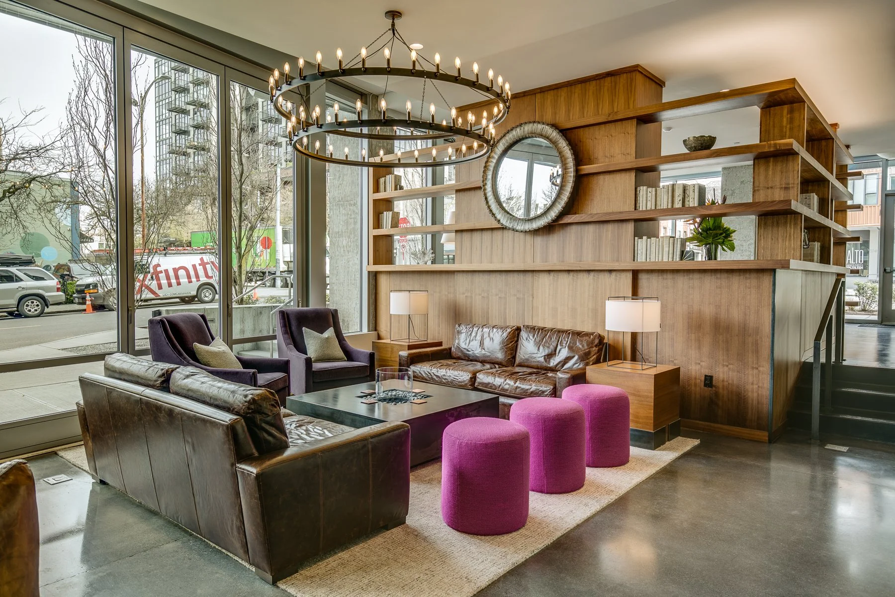 Description: Located in downtown Seattle, this property lacked a defined leasing office. MFID was brought in to redesign the ground floor, creating a dedicated leasing space while also updating the club room and outdoor terrace to enhance functionality and resident experience.