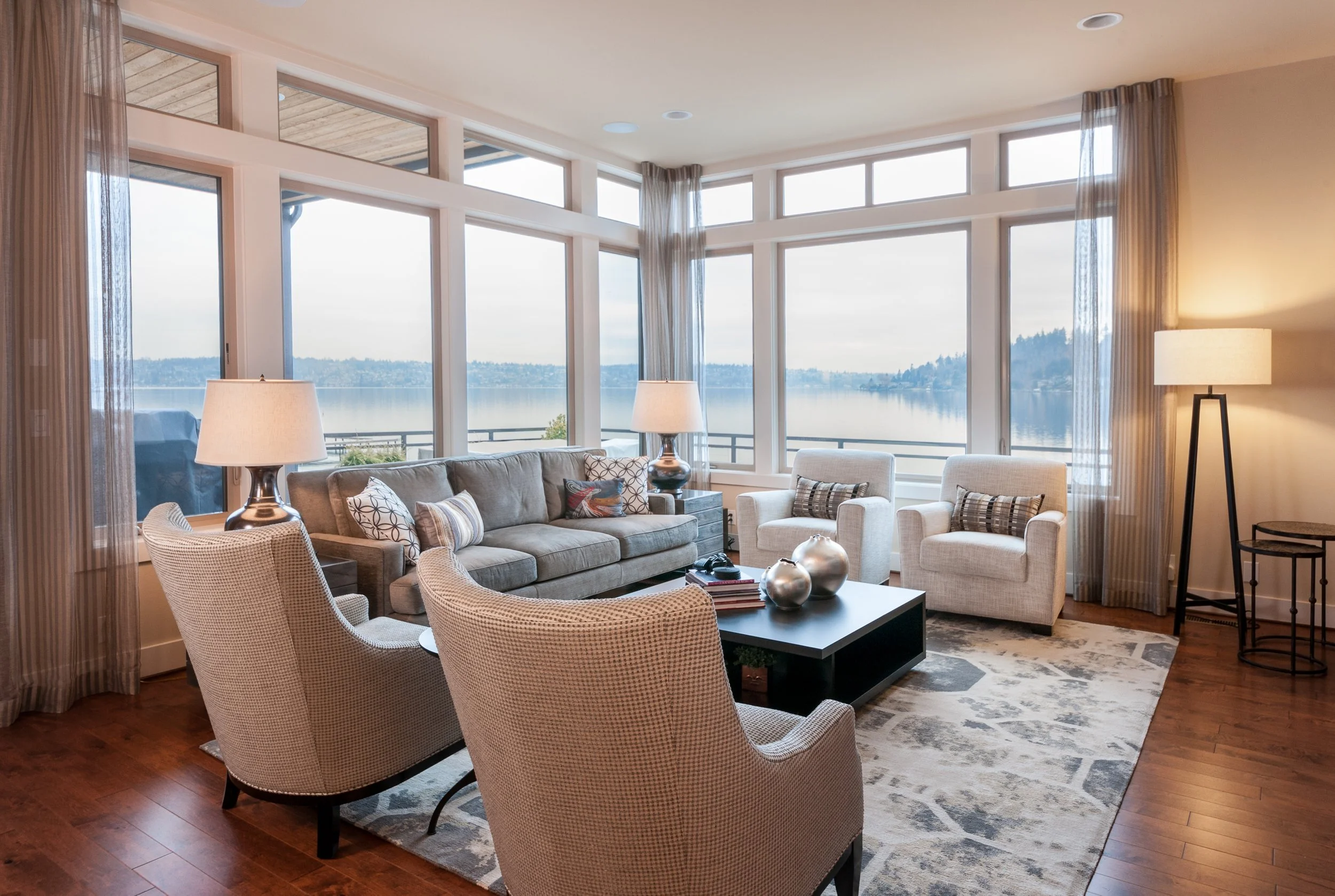 Description: For this new construction on Lake Washington, we partnered with our client to create a serene retreat—curating furniture, art, window treatments, and layered details that turn the house into a truly livable home.